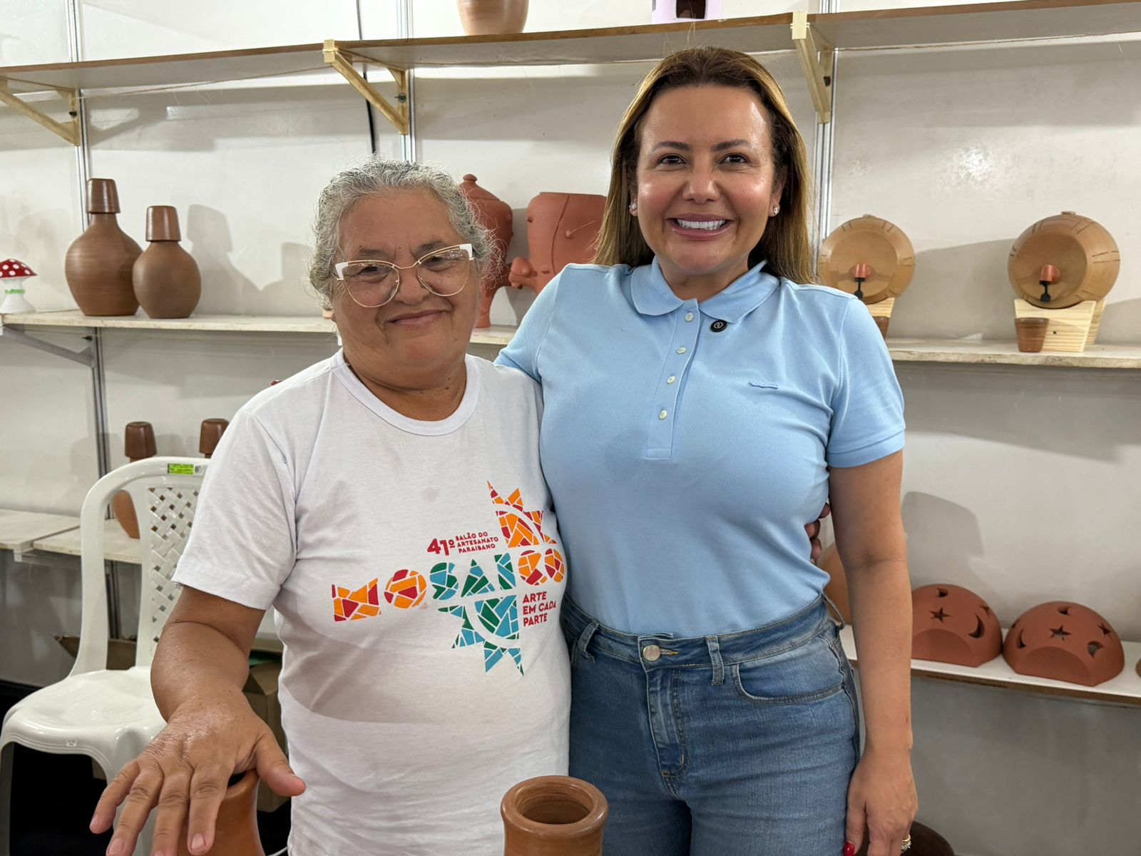 Dentre os 24 artesãos, estão dona Josefa, 77 anos, e Antônio Felizmino, que tem mais de 40 anos no artesanato. Eles agradeceram à prefeita por todo apoio disponibilizado e pontuaram a alegria em participar o salão.